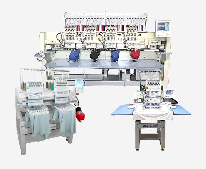 CAMFive EMB manufactures and sells different types of high-quality Embroidery Machines. We have compact and semi-compact commercial embroidery machines with single or double heads. We also offer multi-head industrial and professional embroidery machines for every purpose and industry, embroiders with 4, 6 and 8 heads, with 15 or 12 needles/colors.